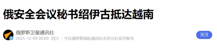 连俄罗斯普京都坐不住了,这边中俄军演刚结束,那边俄安理会秘书绍伊古穿越整个欧亚大陆飞到越南。